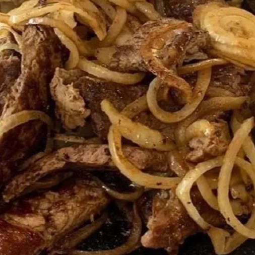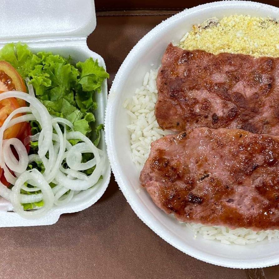 Deliciosa Porção de Contra Filé, Feito na Chapa Acebolada. Acompanha Maionese e Pãozinho.