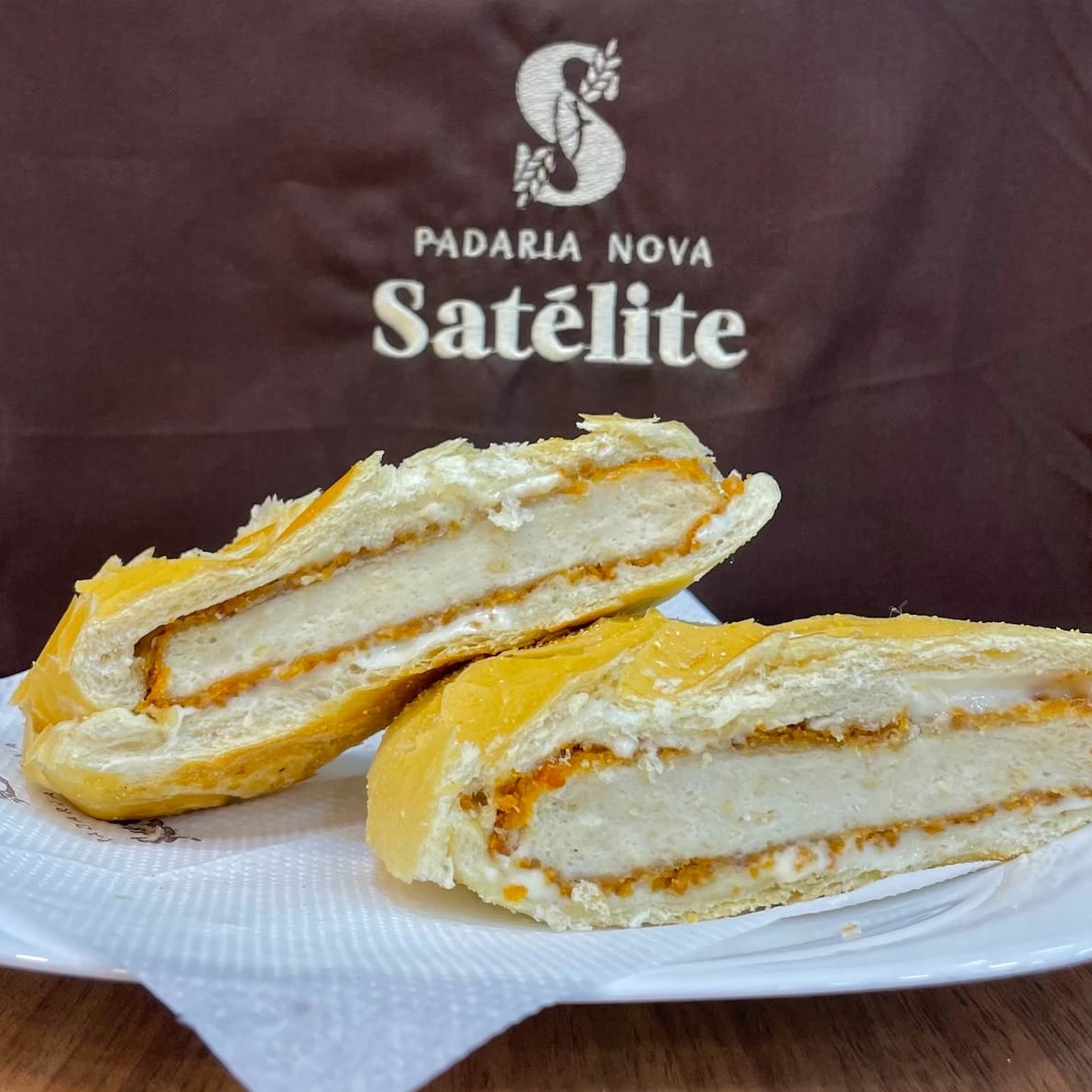 Delicioso Lanche Tradicional De Padaria Pão Frances Da Padaria Nova Satélite, Com Queijo Prato e Presunto, Quente Derretido Na Chapa