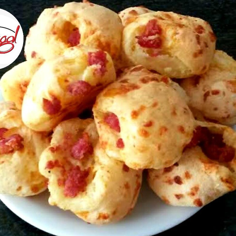 Pacote com 06 unidades de mini pão de queijo recheado com calabresa.
