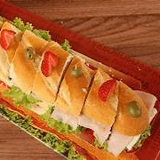 Pão francês de Metro, Recheado com: Peito de Peru, Queijo Branco, Maionese Light, Tomate e Alface. Com aproximadamente de 20 a 22 Pedaços! Entregue em uma Caixa Quadrada. O prazo das entregas dos Lanches de Metro é aproximadamente 2 horas. Os lanches de Metro não seguem o prazo padrão de entrega.