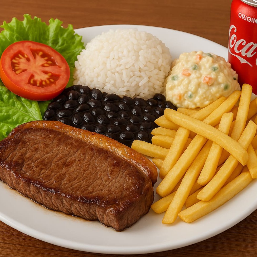 Nesse combo voce economiza mais de R$10 Nosso tradicional prato de contra filé selecionado que acompanha: -Arroz - Feijão - Salada verde - Salada maionese No combo com - Um refri lata 375 ml - Fritas. Nesse combo voce economiza mais de R$10