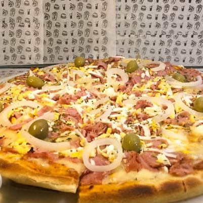 Nossa massa: Pizza com massa especial, de produção própria, feita pelo nosso pizzaiolo especializado. Nosso sabor: Base com molho de tomate único, coberta por calabresa defumada e uma cobertura deliciosa de queijo que vai encantar seu Dia. *Pizza grande - 8 pedaços.