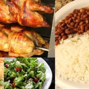 Ideal para o almoço de domingo com a familia!! - delicioso frango assado com batatas + porção de arroz + porção de feijão + salada verde especial + salada maionese.