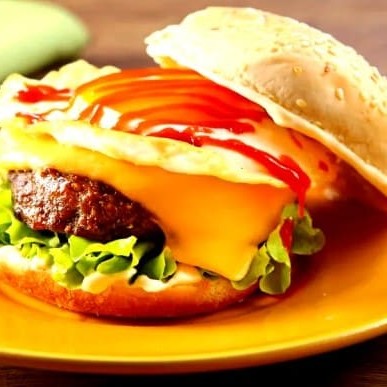 Hamburger 90g + queijo + ovo no pão de hamburger de fabricação própria.
