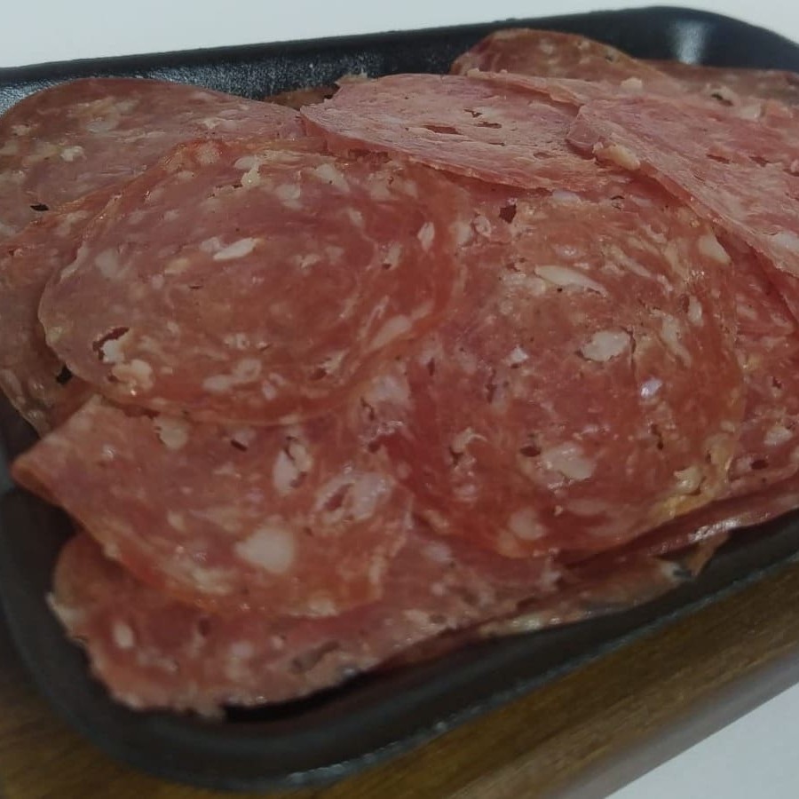 Porção com 200 g de salame italiano fatiado