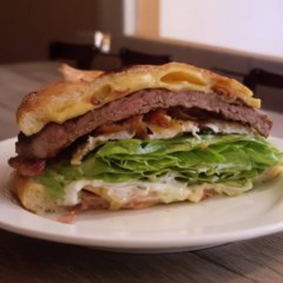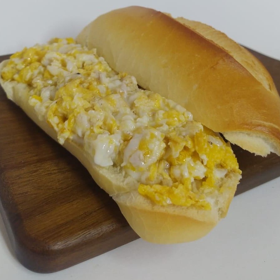 Delicioso pão francês recheado com dois ovos fritos ou mexidos.