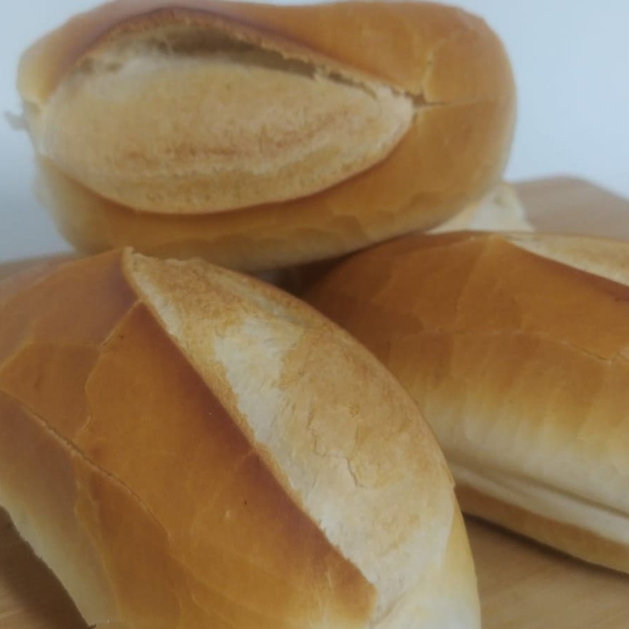 Pão francês tipo integral feito no forno a lenha com manteiga na chapa.
