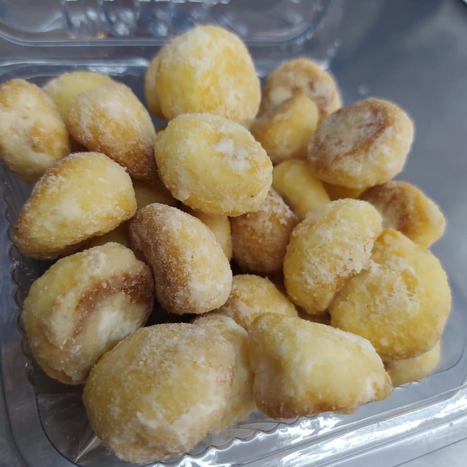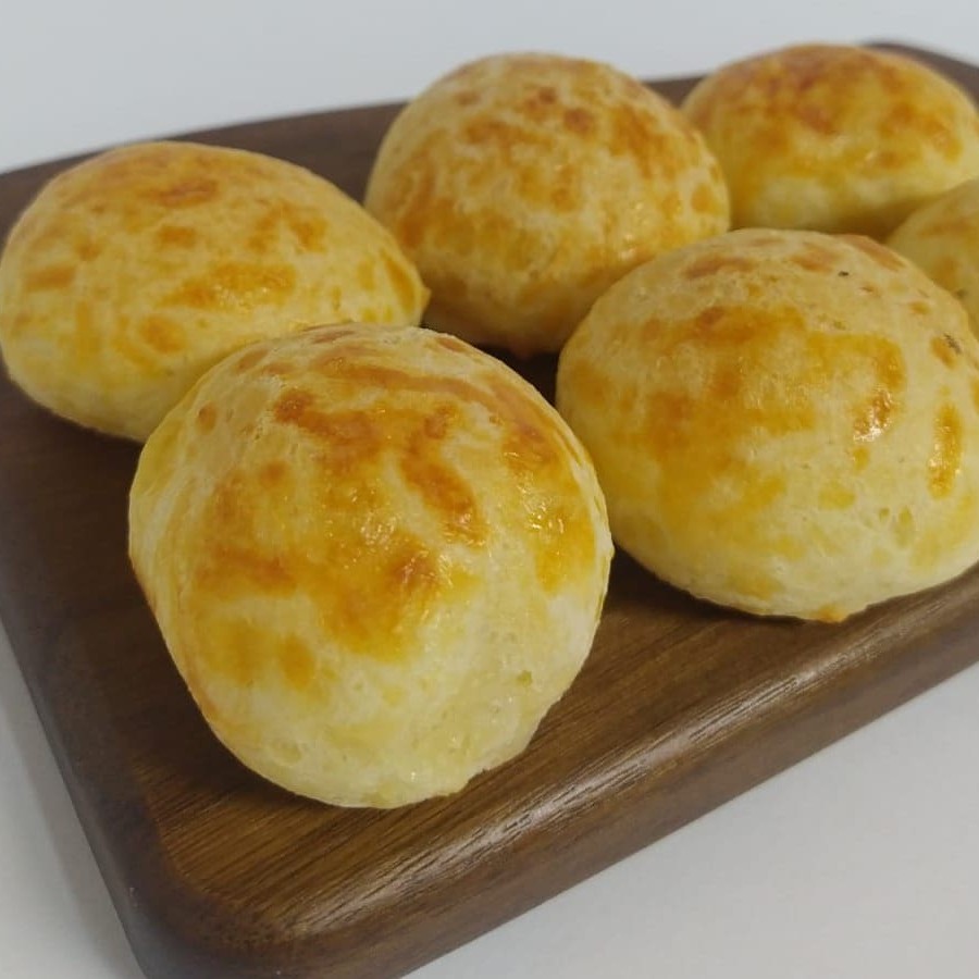 Porção com 6 mini pães de queijo feitos artesanalmente no forno a lenha.