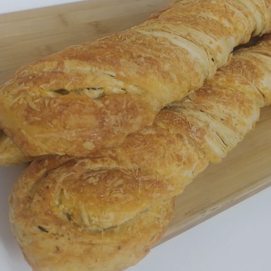 Filetinho de parmesão feito no forno a lenha massa folhada com queijo parmesão