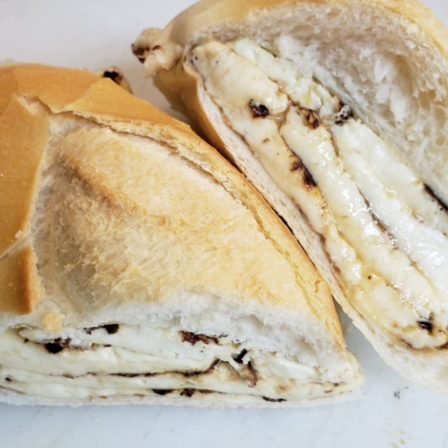Queijo prato derretido na chapa no Pão Frances