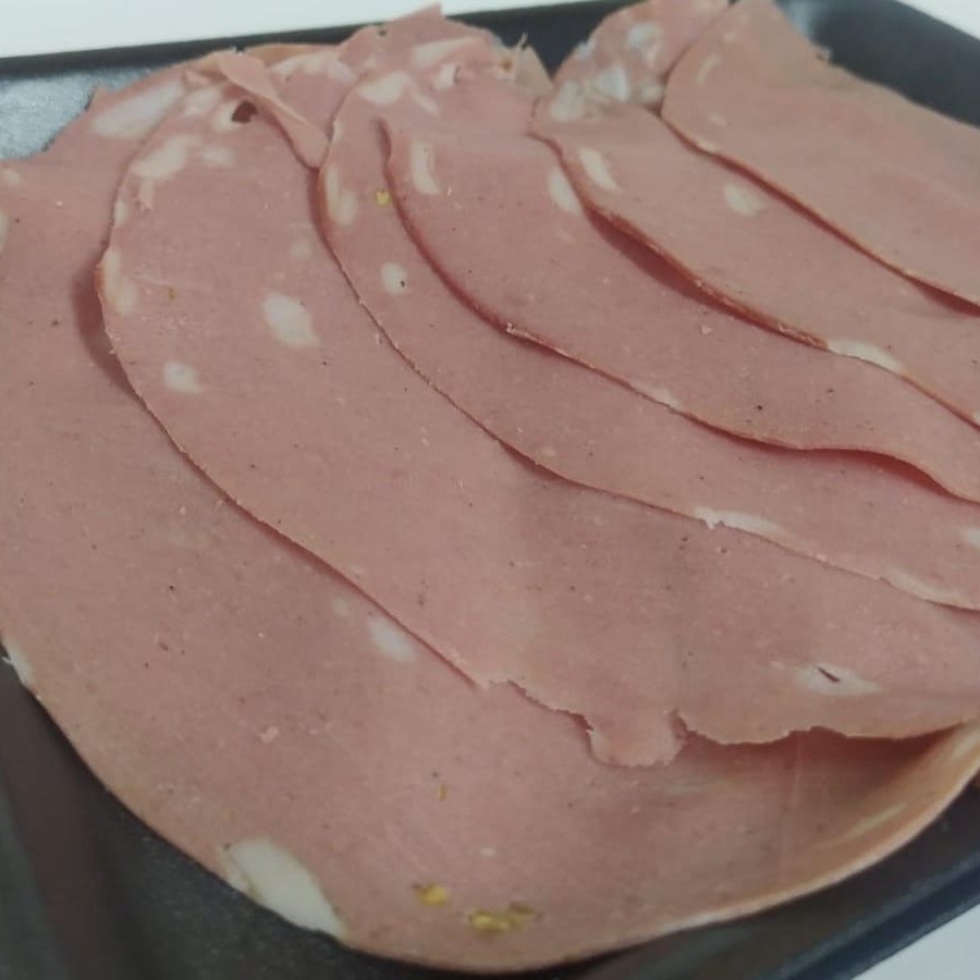 Porção com 200 g de mortadela ouro fatiada