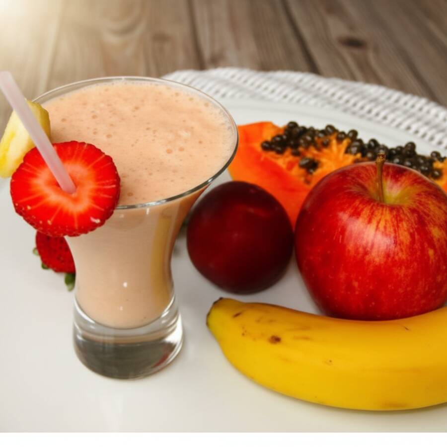 Vitamina Mista batida no Leite Integral com Banana, Maça, Mamão e Abacate!
