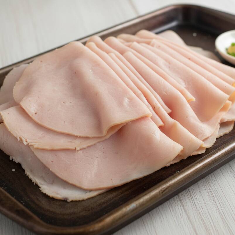 Porção com 200 g de peito de peru fatiado