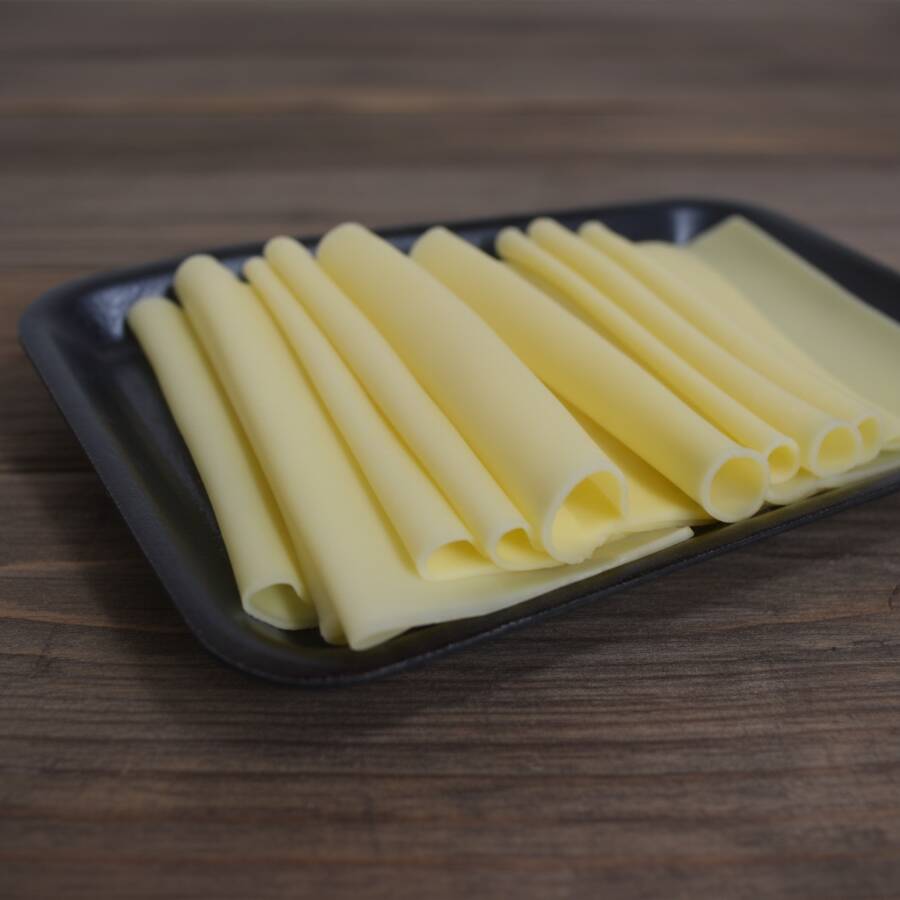 Porção com 200 g de queijo prato fatiado