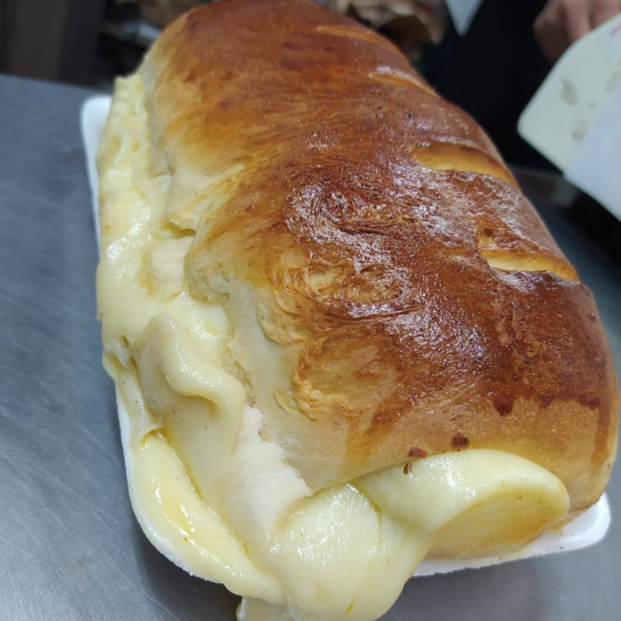 Pão mineiro feito no forno a lenha com queijo mussarela em toda massa. Aproximadamente 550g