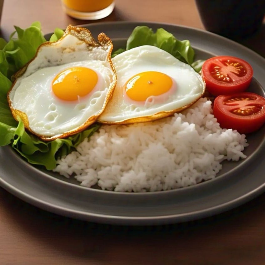 2 Ovos fritos, arroz, feijão, alface e tomate.