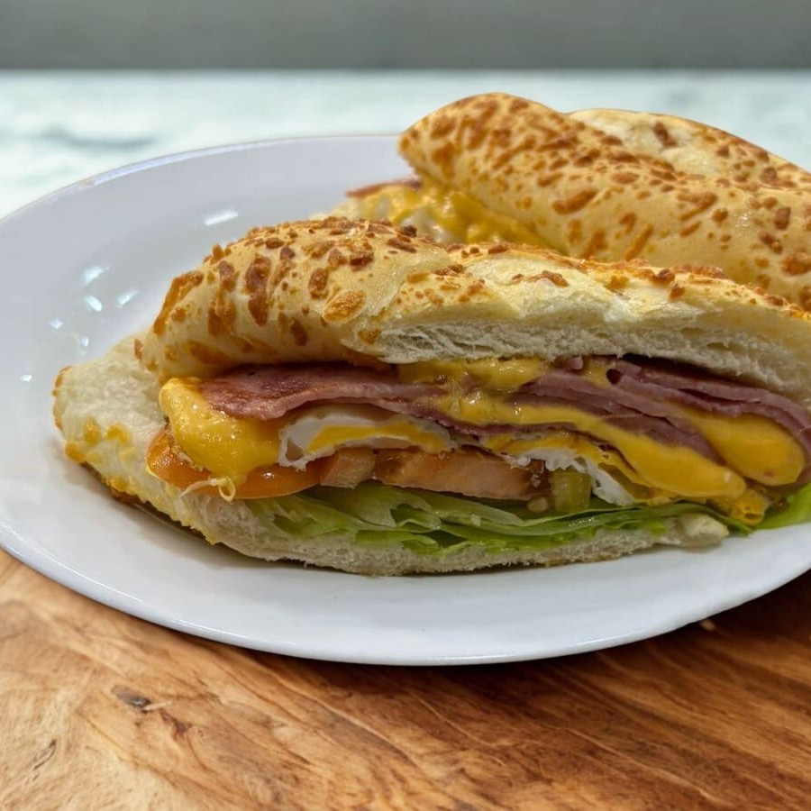 Leve,saborosa e irresistível! Baguete recheada de peito de piru com queijo.
