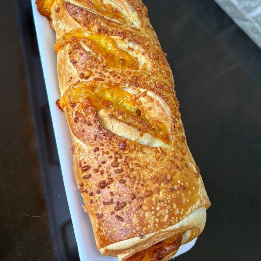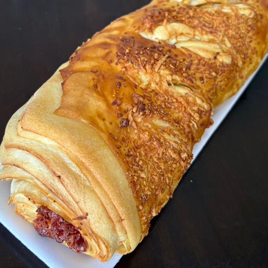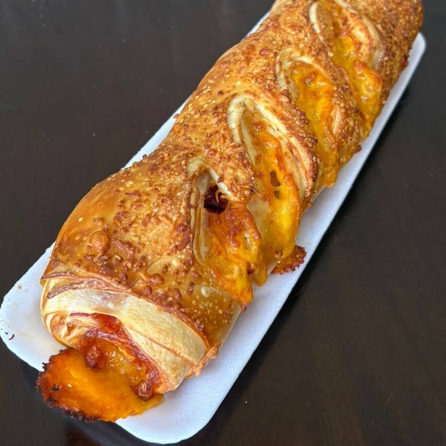 Queijo derretendo,calabresa saborosa e crocância perfeita.Baguete de calabres com queijo.