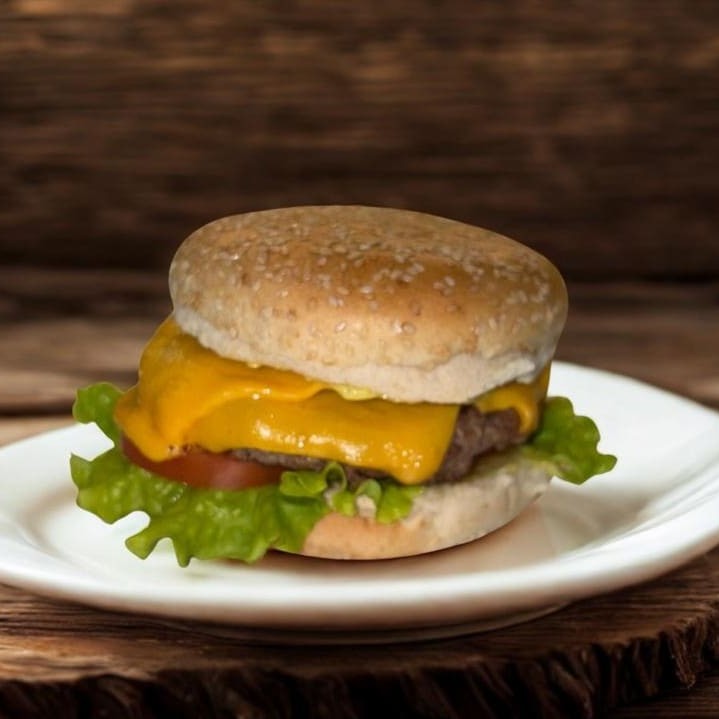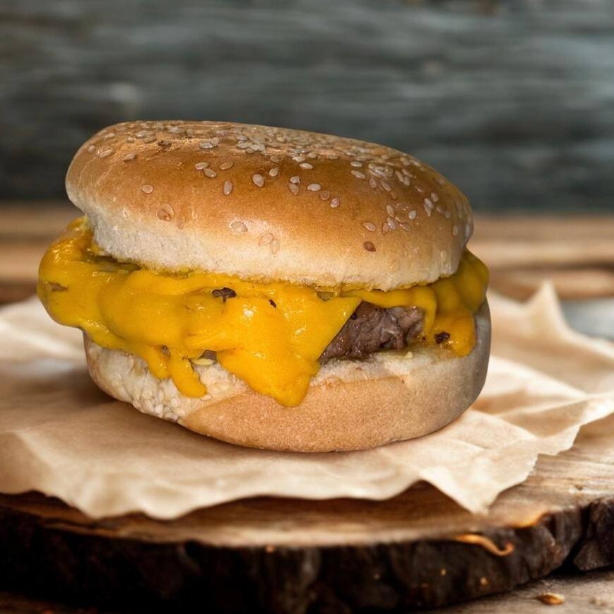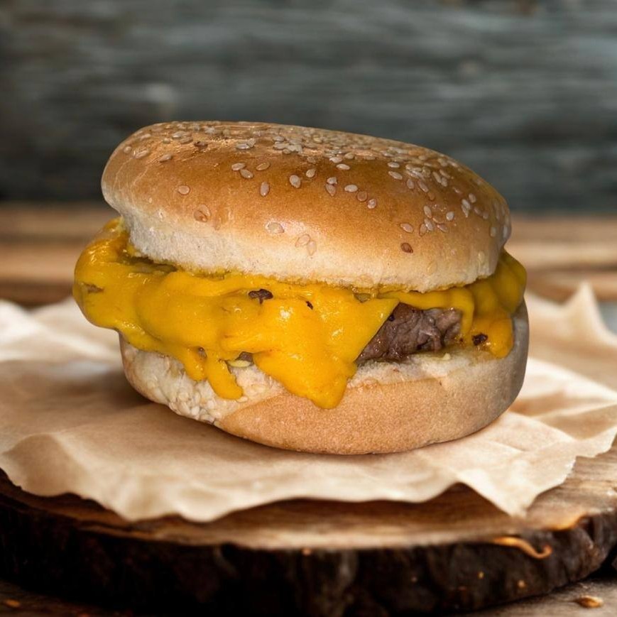 Hambúrguer artesanal 160g, salada fresca e cheddar cremoso.