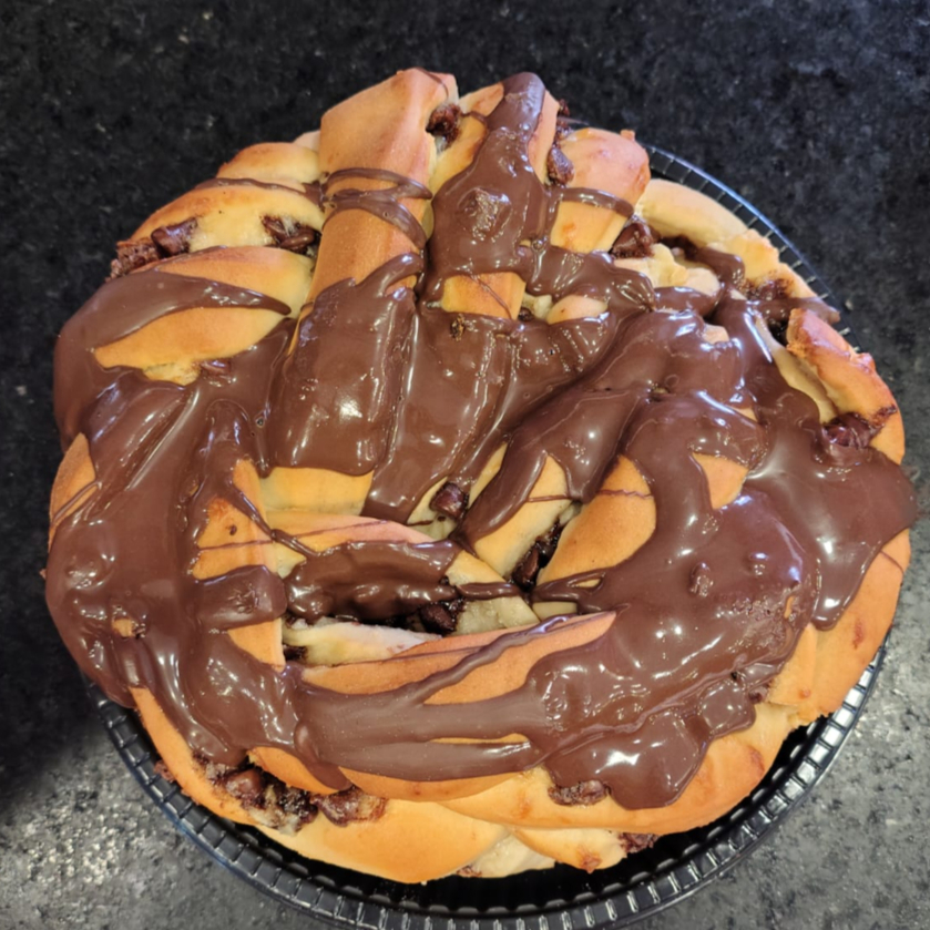Massa fofinha com granulados de chocolate. Irresistível no café da tarde.