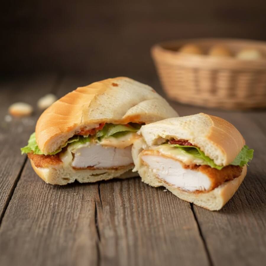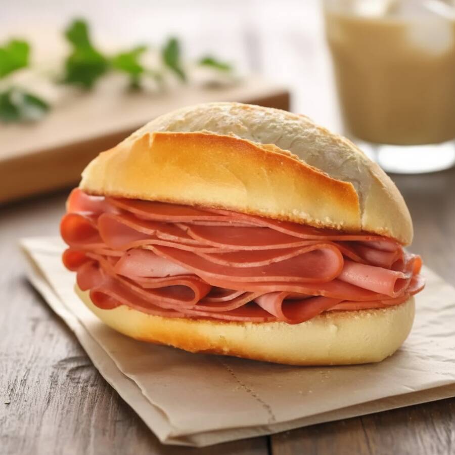 Pão francês saboroso e crocante recheado com fatias de mortadela