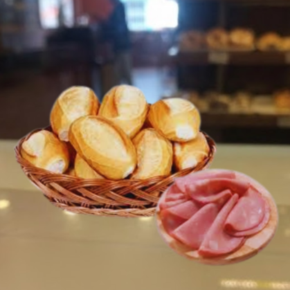 8 pães francês+ 200g mortadela