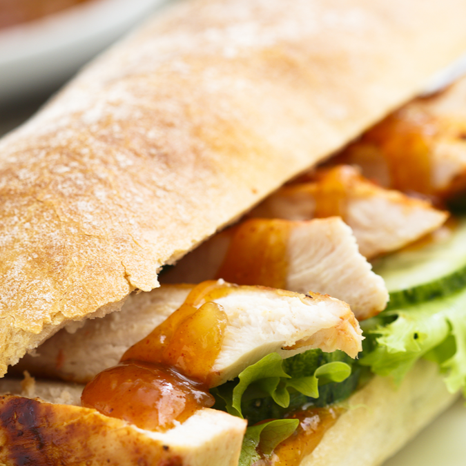 Frango desfiado e temperado com ervas e um toque de cremosidade.