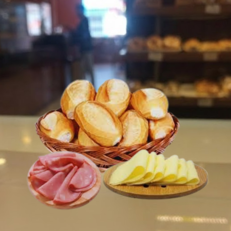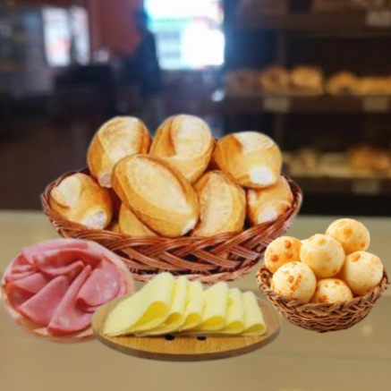 Combo G - 10 Pães Franceses + 200g Mini Pão De Queijo + 200g Mortadela + 200g De Mussarela