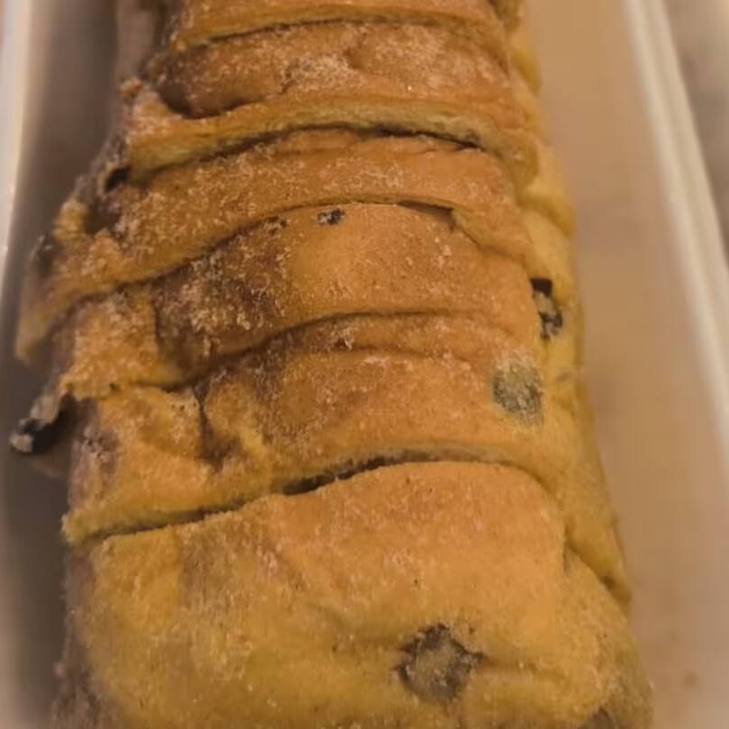 Pão doce polvilhado com açúcar de confeiteiro.