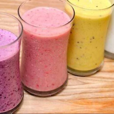 Iorgute batido com iorgute, leite, açucar e uma fruta (de sua preferência).