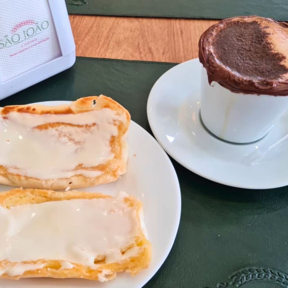 Delicie-se com um Pão Francês saboroso, fresquinho na chapa, crocante e dourado, recheado com manteiga derretida e requeijão cremoso, acompanhado de uma Média de Café Expresso, intenso e aromático.