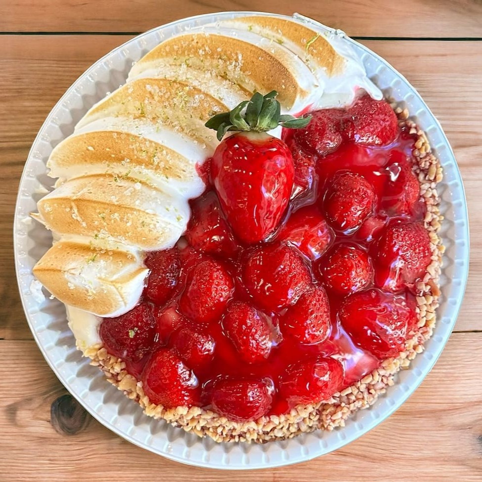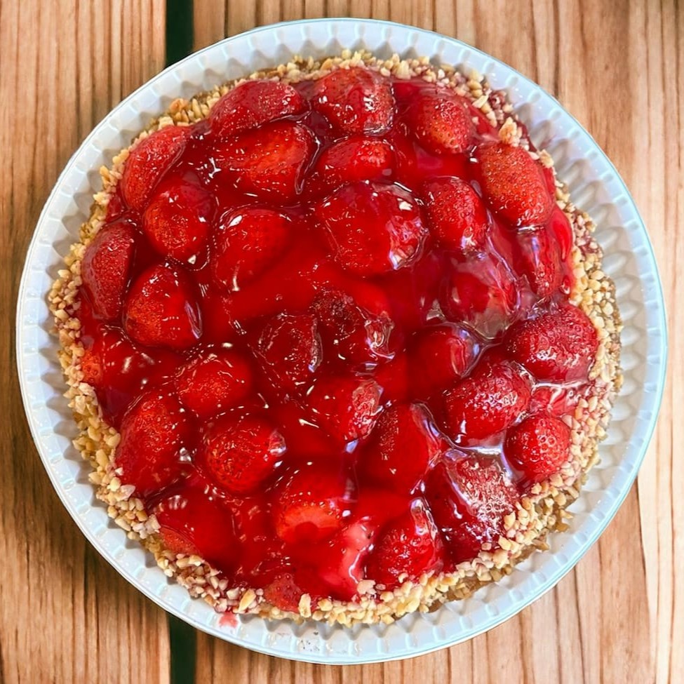 Experimente a nossa deliciosa Torta de morango com morangos frescos e calda irresistível. A sobremesa perfeita para adoçar seu Dia!