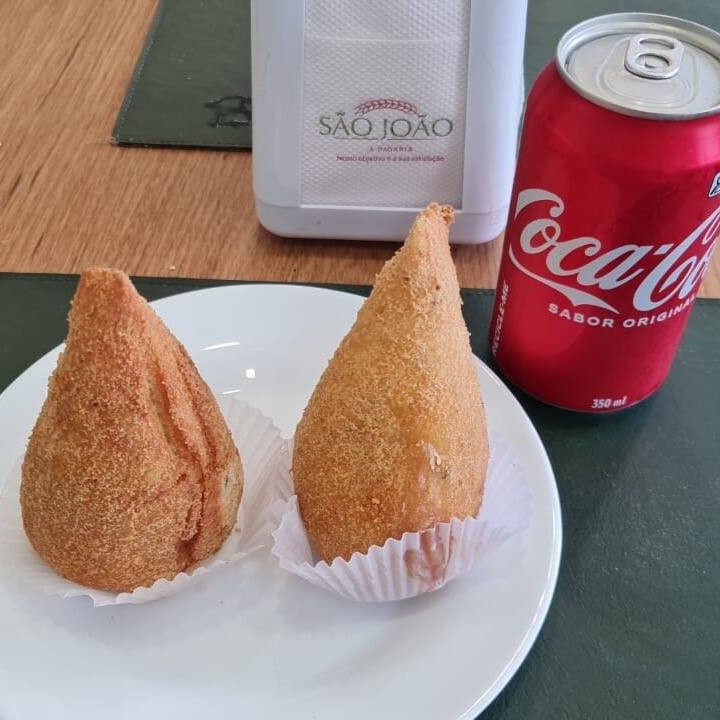 Delicie-se com duas coxinhas de frango, crocantes por fora e recheadas com um cremoso frango desfiado, acompanhadas de uma Coca-Cola geladinha de 350ml.