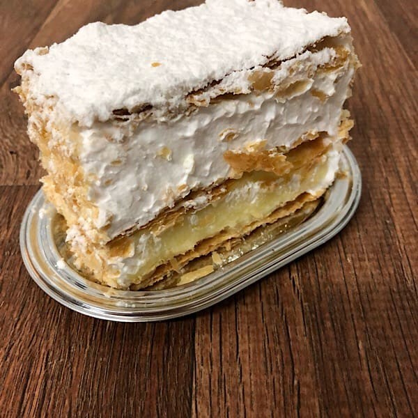 Tamanho individual. farinha de trigo, manteiga, leite, sal, açúcar, ovos, creme baunilha e chantilly. contém glúten. alérgicos: contém trigo, ovo, leite e derivados.