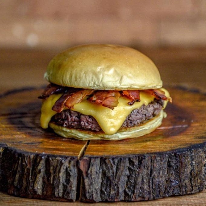 Pão Brioche, maionese, queijo prato, bacon em fatias e nosso suculento burguer bovino de 150g.