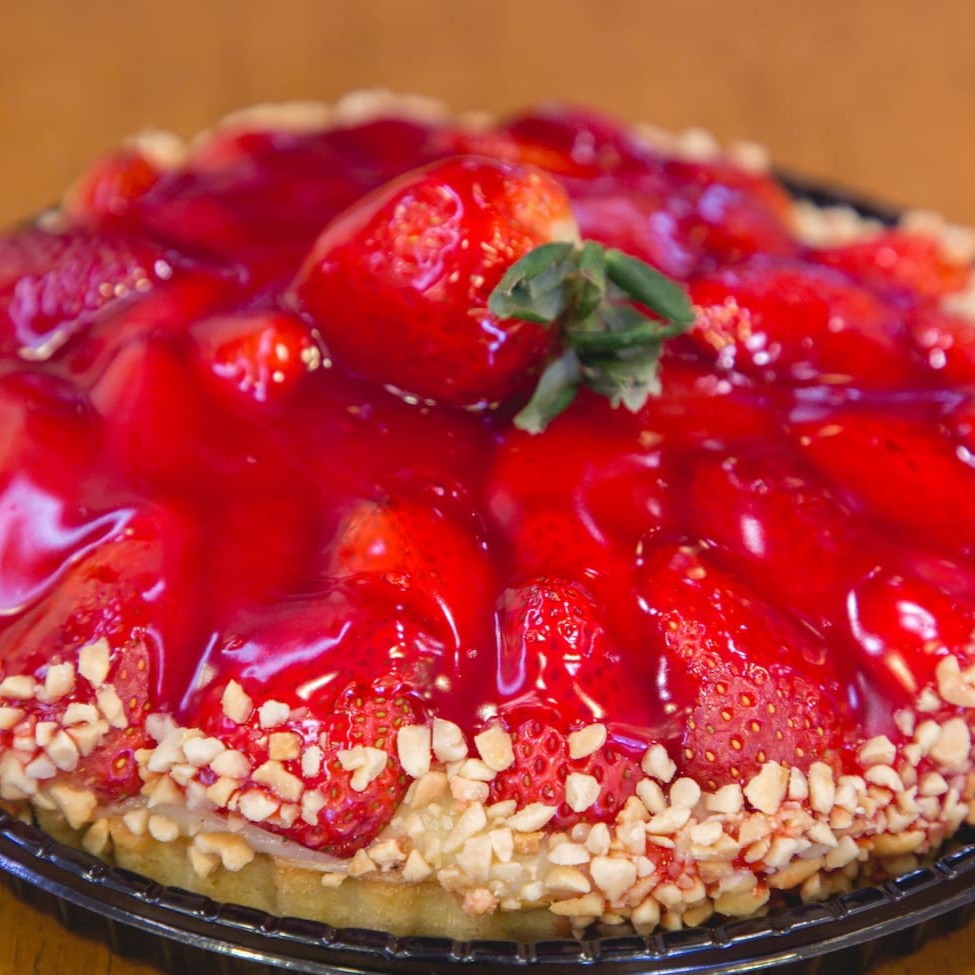Experimente a nossa Torta com massa crocante e generosa camada de morangos frescos, uma delícia irresistível para quem ama doces frutados.