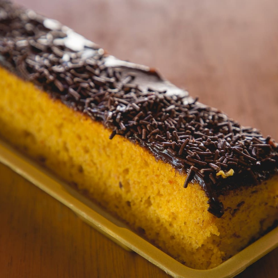 Experimente o nosso bolo de laranja tradicional, preparado com suco e raspas de laranja fresca. Massa fofinha e aromática, com sabor cítrico equilibrado e textura leve.