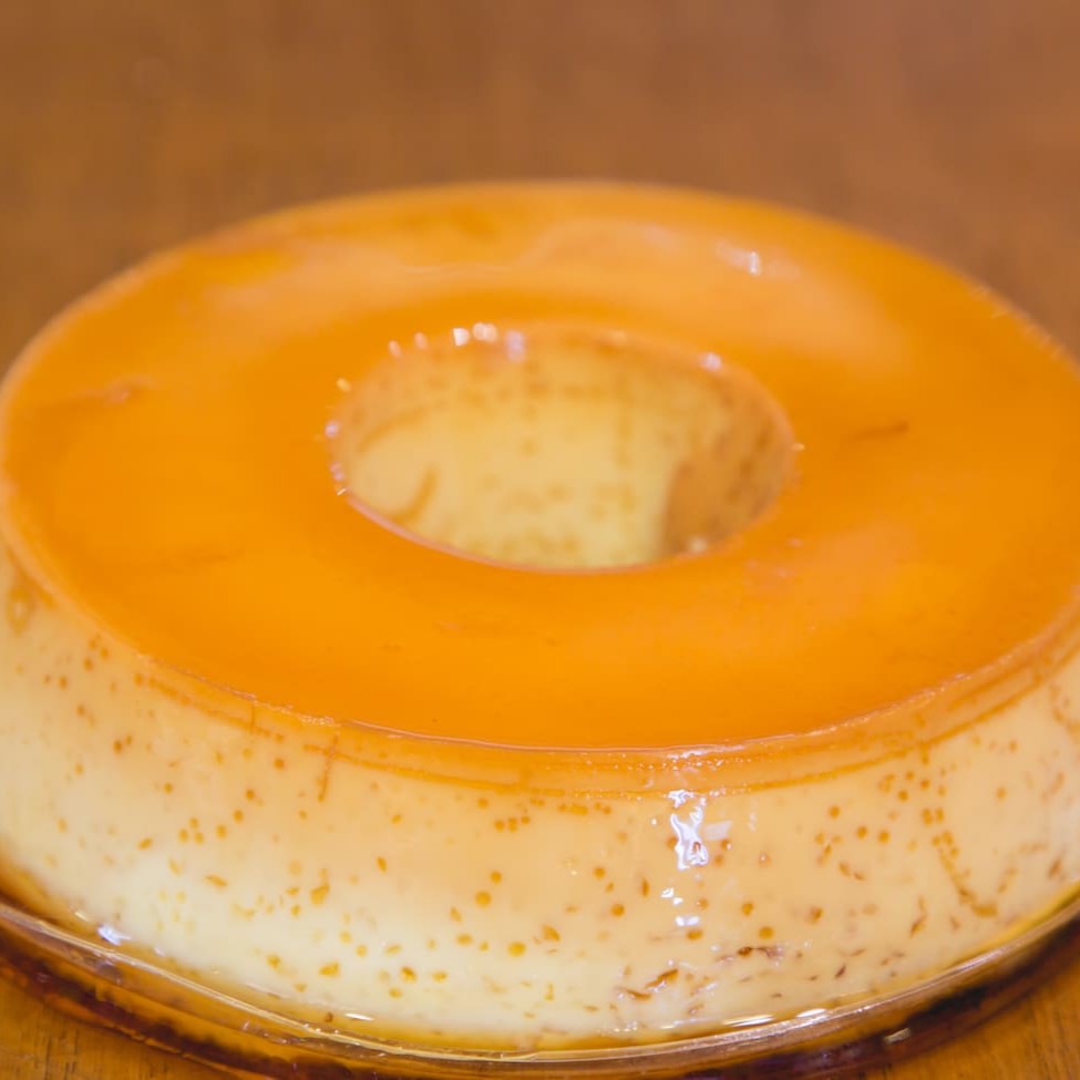 Mini pudim com calda caramelizada, aparência brilhante e sabor equilibrado entre o doce suave e o toque delicado do caramelo.