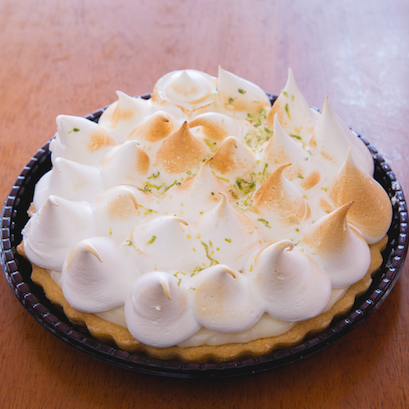 Torta clássica com base crocante, recheio cremoso de limão e cobertura de merengue levemente dourado, finalizada com raspas de limão fresco.