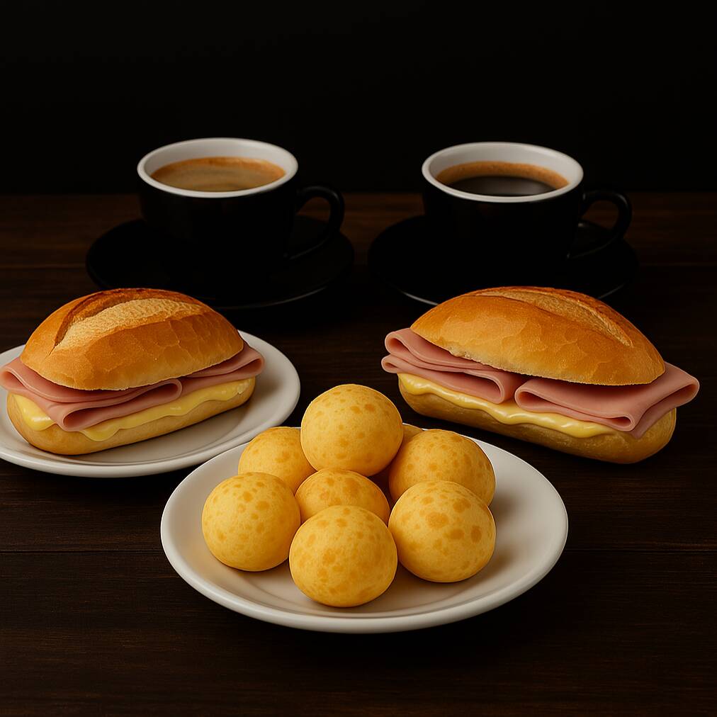 2 Cafés, 2 Mistos Quente E 200g De Pão De Queijo