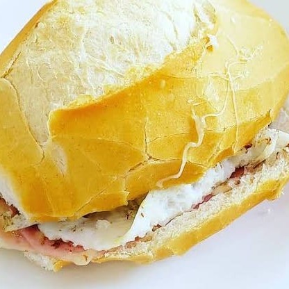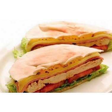 File de frango, mussarela, presunto, bacon, ovo, alface, tomate e maionese, no pão sirio