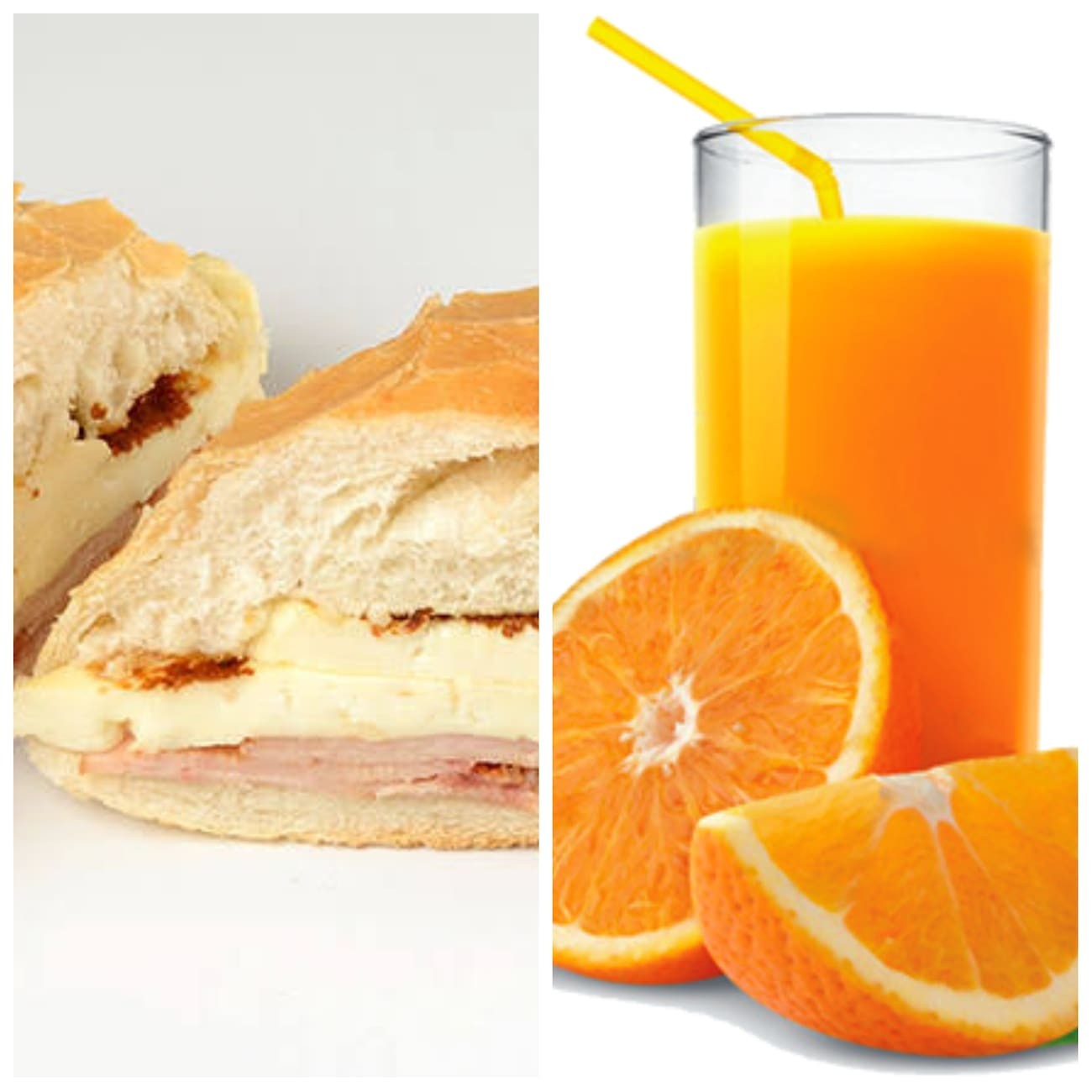 1 misto quente + 1 suco de laranja natural 200 ml.