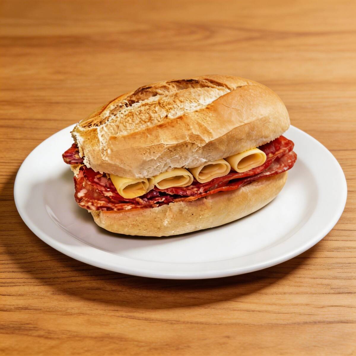 Linguiça calabresa na chapa com queijo prato no pão francês