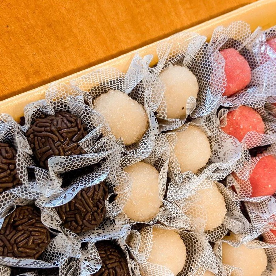 Clássicos docinhos brasileiros brigadeiro, beijinho e bicho de pé, fresquinhos e irresistíveis, são perfeitos para festas ou para adoçar o seu Dia!