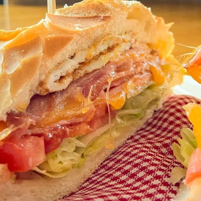 Sanduíche robusto com pão francês, presunto, queijo, ovo, alface e tomate. Preparado na hora, sempre fresquinho e cheio de sabor, perfeito para uma refeição rápida e deliciosa!