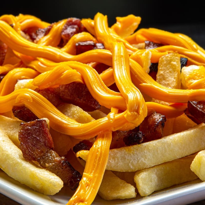 Uau! Uma porção completa! Fritas Sequinhas com Bacon e Cheddar!