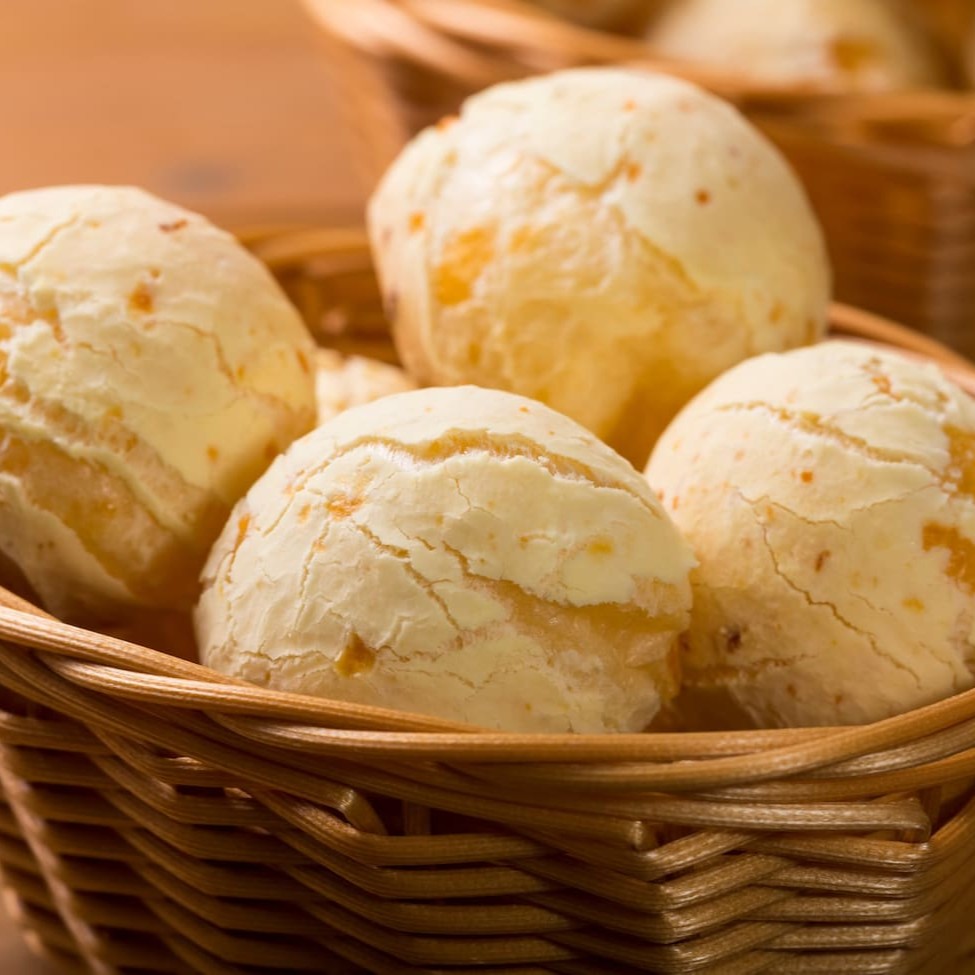 Uma verdadeira obra-prima da culinária, este delicioso pão de queijo tradicional é a perfeita combinação de sabor e textura, com sua crosta dourada e interior macio ideal para o café da manhã ou lanche da tarde.