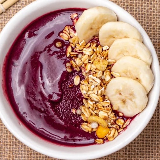 500g de Açaí, 1 Pacote Granola ( 30g), 1 Porção Mel, 1 Porção Morango Picado 1 Porção Banana Picada.