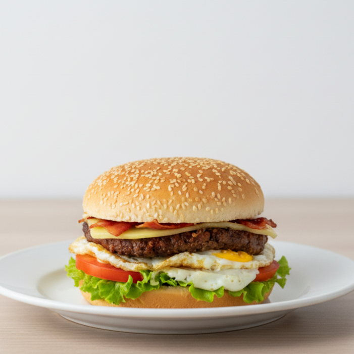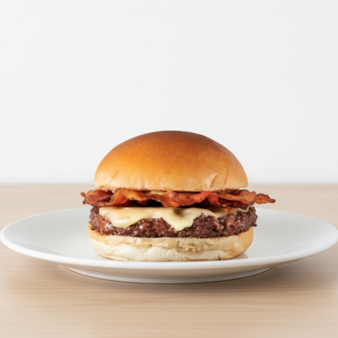 A irresistível combinação de ingredientes no nosso Cheese Bacon o sabor único de um pão macio e fresco, com uma suculenta carne de alta qualidade. O queijo derretido, trazendo cremosidade e uma explosão de sabor a cada mordida, é elevado à perfeição pelo crocante e saboroso bacon. Uma obra-prima dentro da categoria Hambúrgueres.