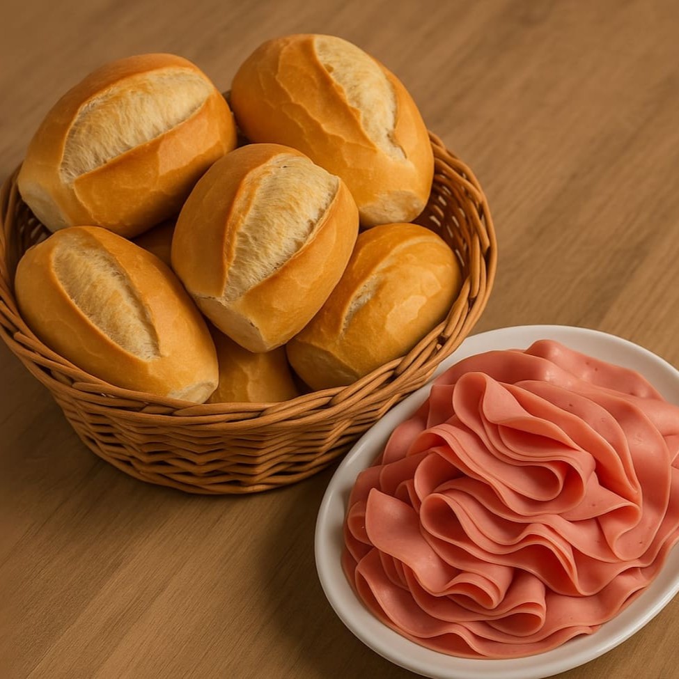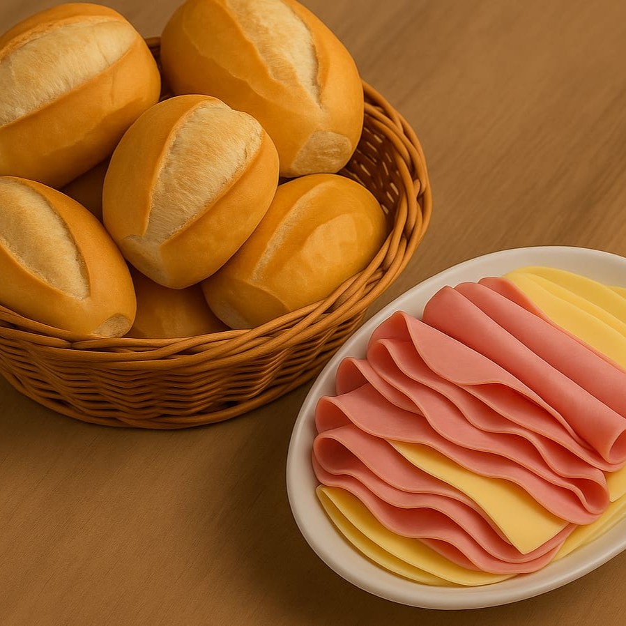 Combo contendo 10 unidades do nosso Pão Francês, 200g de Presunto e 200g de Muçarela.